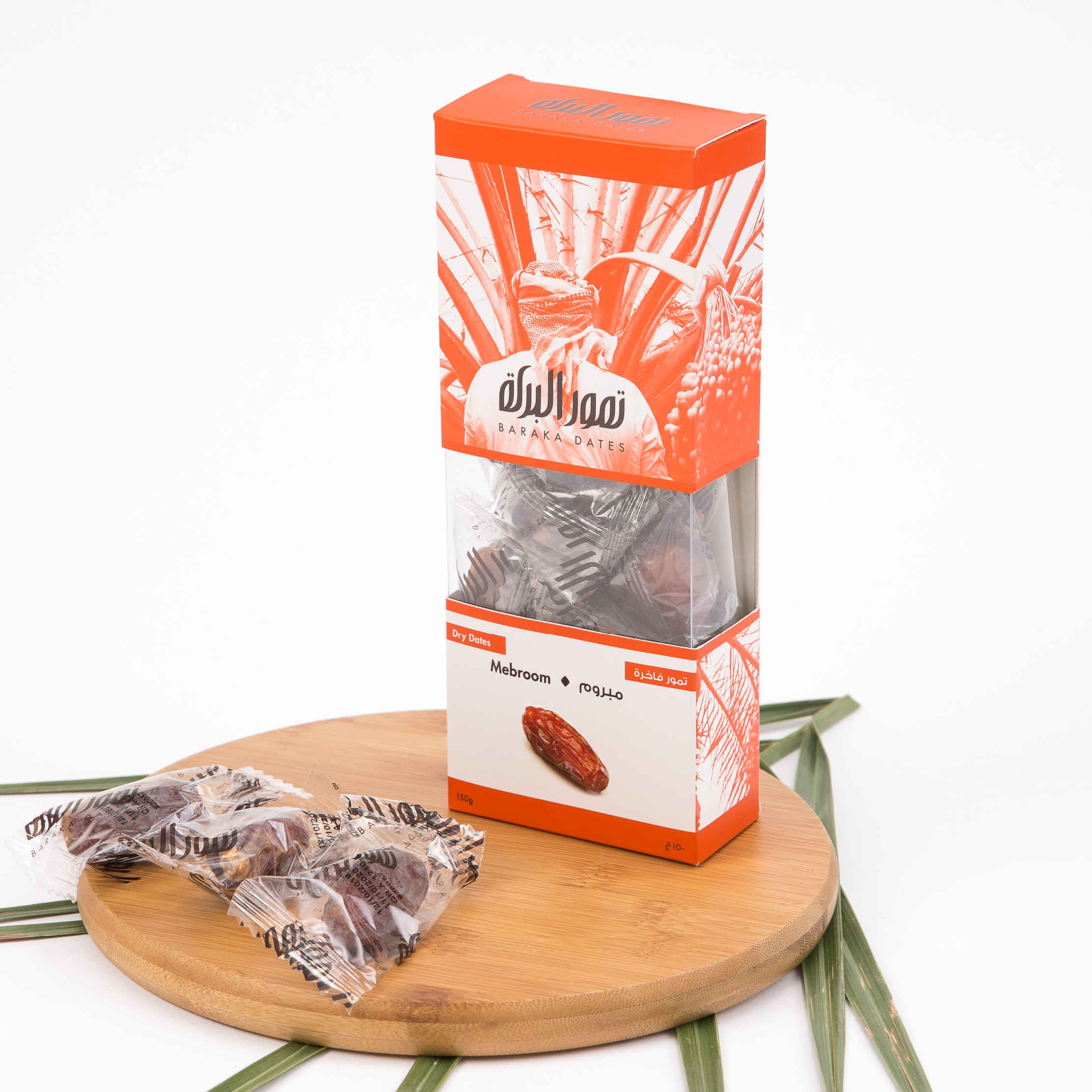 Mabroom dates are considered among the finest varieties, known for their elongated shape and red color. They’re renowned for their superior quality and excellent taste. Mabroom dates are cultivated in Al-Madinah Al-Munawwarah. Single wrapped Packed in a box