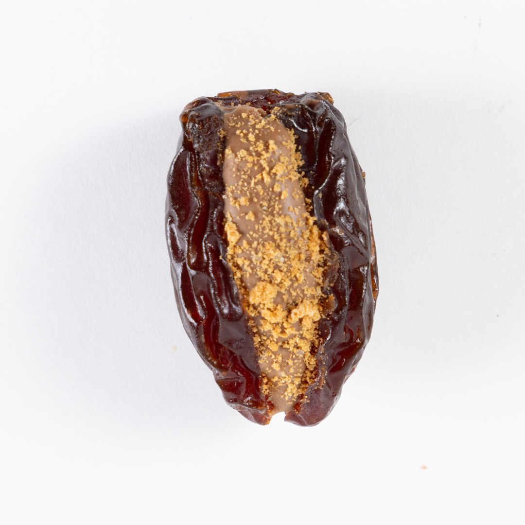 Medjool date stuffed with lotus cream and topped with crunchy pieces of lotus biscuit