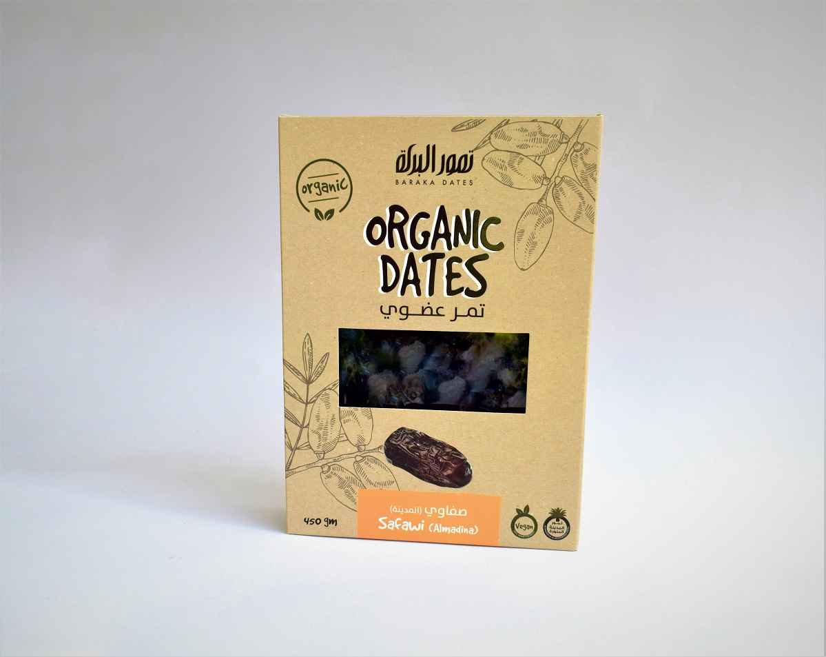 “Safawi dates are distinguished by their intense black color, medium size, and smooth texture. Their taste is similar to that of Ajwa dates. Safawi dates are grown in Medina. Packaged in a plastic box