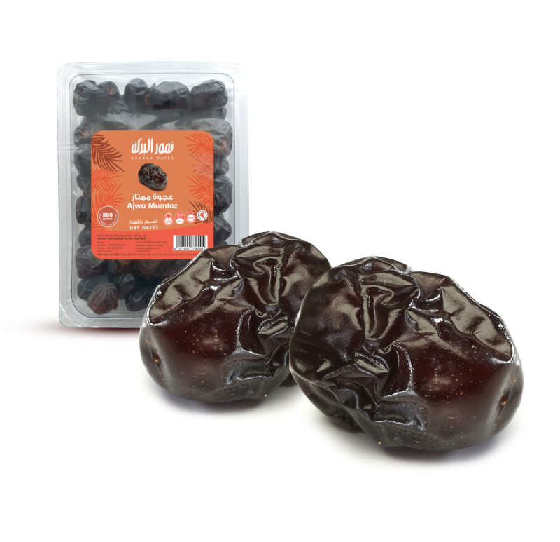 تمور العجوة هي نوع محدد من التمور تزرع في المدينة المنورة. تحظى بشهرة كبيرة بفضل طعمها الغني ونعومتها، وتتمتع بعدة فوائد صحية. تمتاز تمور العجوة بلونها البني الداكن وملمسها المجعد قليلاً، وطعمها الحلو المعتدل. معبأه بعلبة بلاستيك